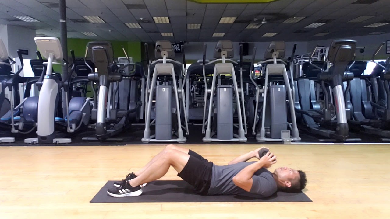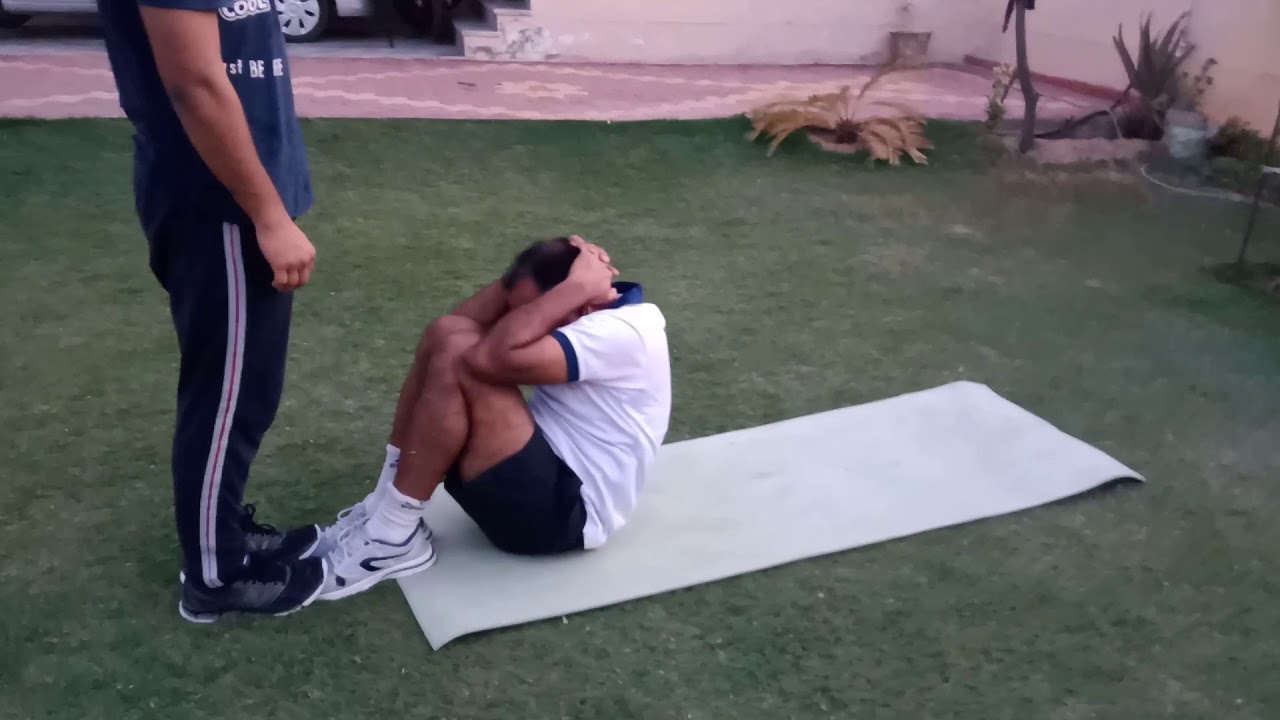 Fitness classic still gets the job done. Sit on the mat with knees bent and feet flat on the mat. 15 seconds of sit ups regardless of number.